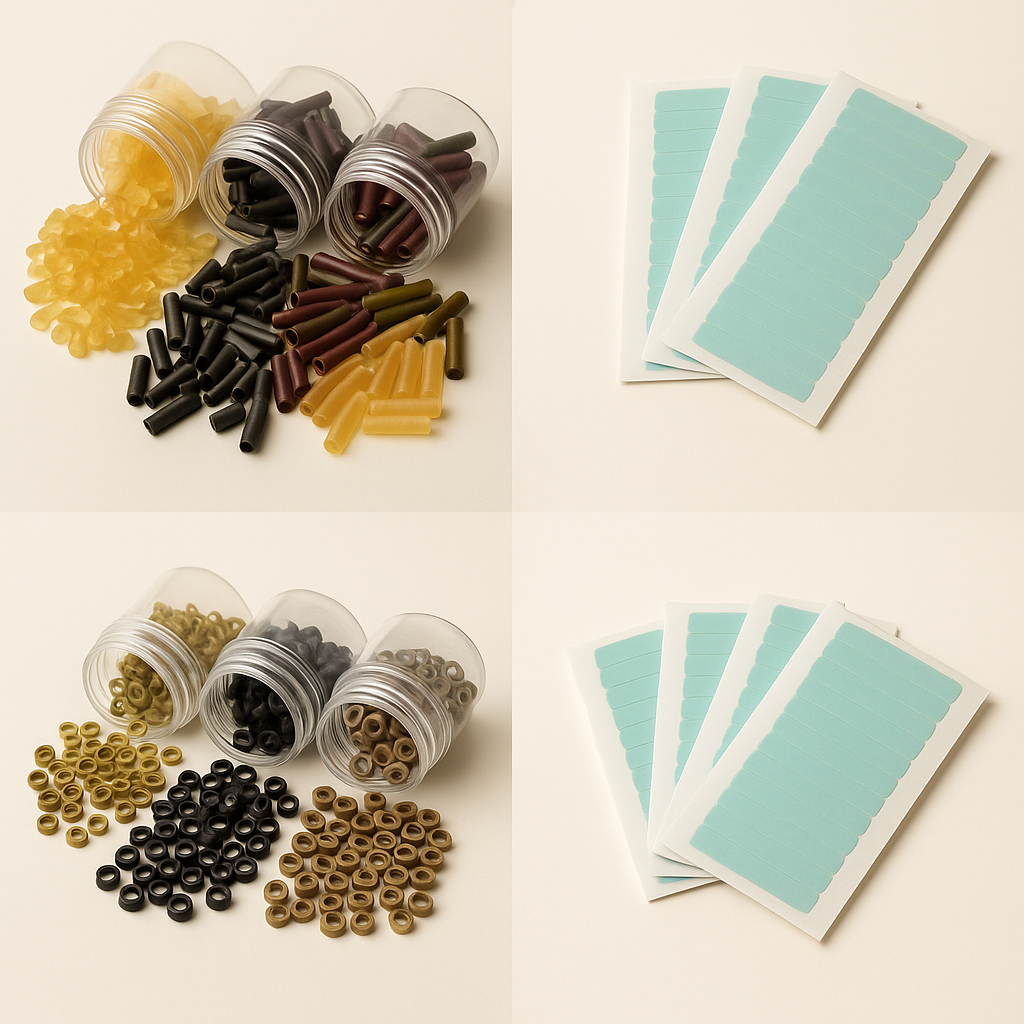 Objevte naši kompletní nabídku profesionálního příslušenství pro všechny metody prodlužování vlasů — od keratinu přes Micro Ring až po tape-in nebo PVC bužirky. Díky pečlivě vybíraným komponentům dosáhnete přesného, bezpečného a krásného výsledku při každém použití.